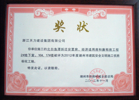 北白魚潭拆遷安置房、經(jīng)濟適用房和廉租房工程2#地下室、16#、17#樓被評為2012年度市優(yōu)勝標化