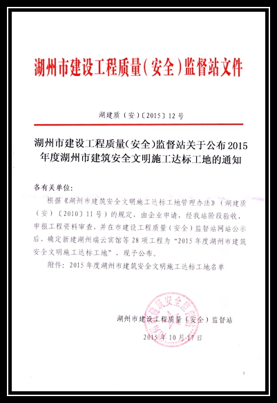 2015年度湖州市建筑安全文明施工達(dá)標(biāo)工地-湖州市教育局湖州市仁北小學(xué)工程二標(biāo)段