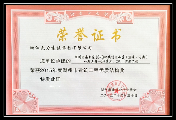 2015年度湖州市建筑工程優(yōu)質(zhì)結(jié)構(gòu)獎(jiǎng)評(píng)定結(jié)果