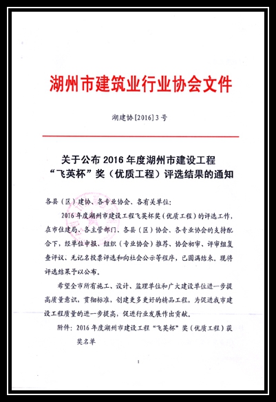 2016年度湖州市建設工程“飛英杯”獎(優質工程)評選結果