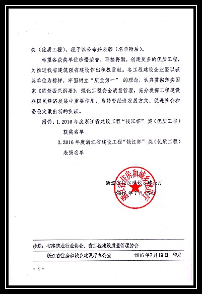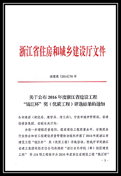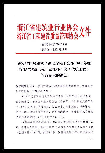 2016年度浙江省建設工程錢江杯獎
