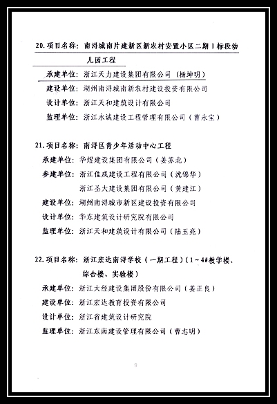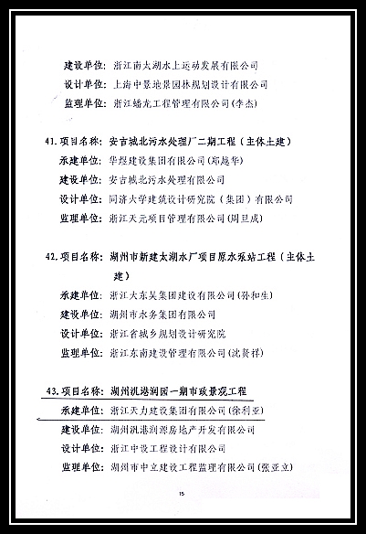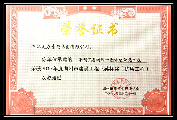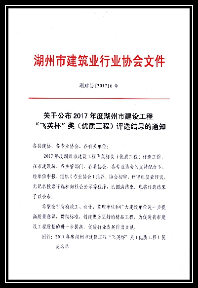 2017年度湖州市建設工程“飛英杯”獎優質工程