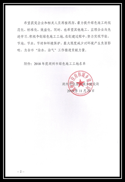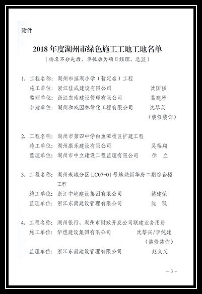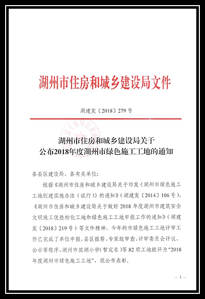 2018年度湖州市綠色施工工地