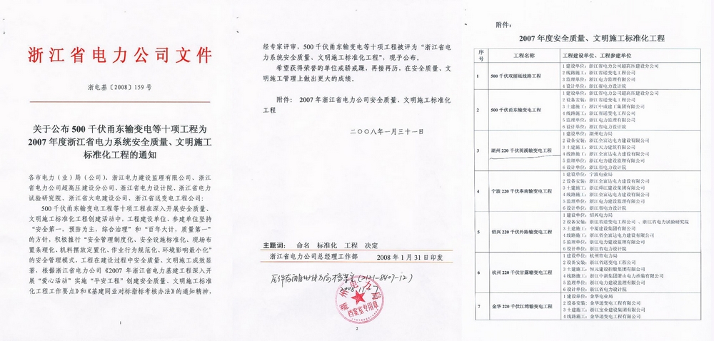 湖州220千伏英溪變電所2007年度浙江省電力系統標化