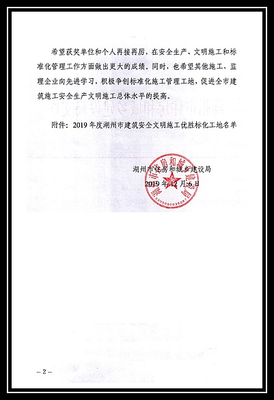2019年度湖州市建筑安全文明施工優(yōu)勝標(biāo)化工地