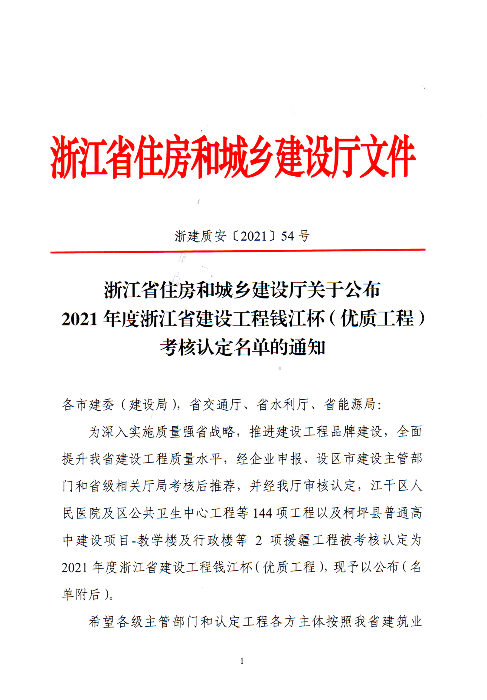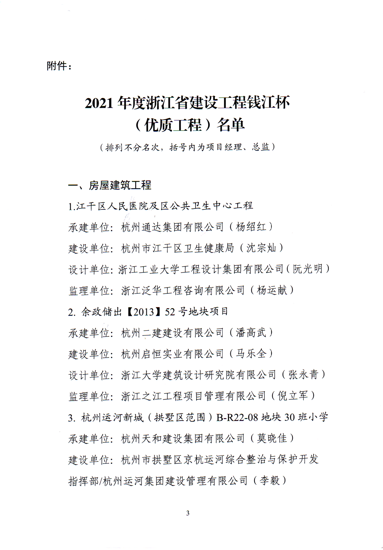 2021年度浙江省建設工程錢江杯(優質工程)