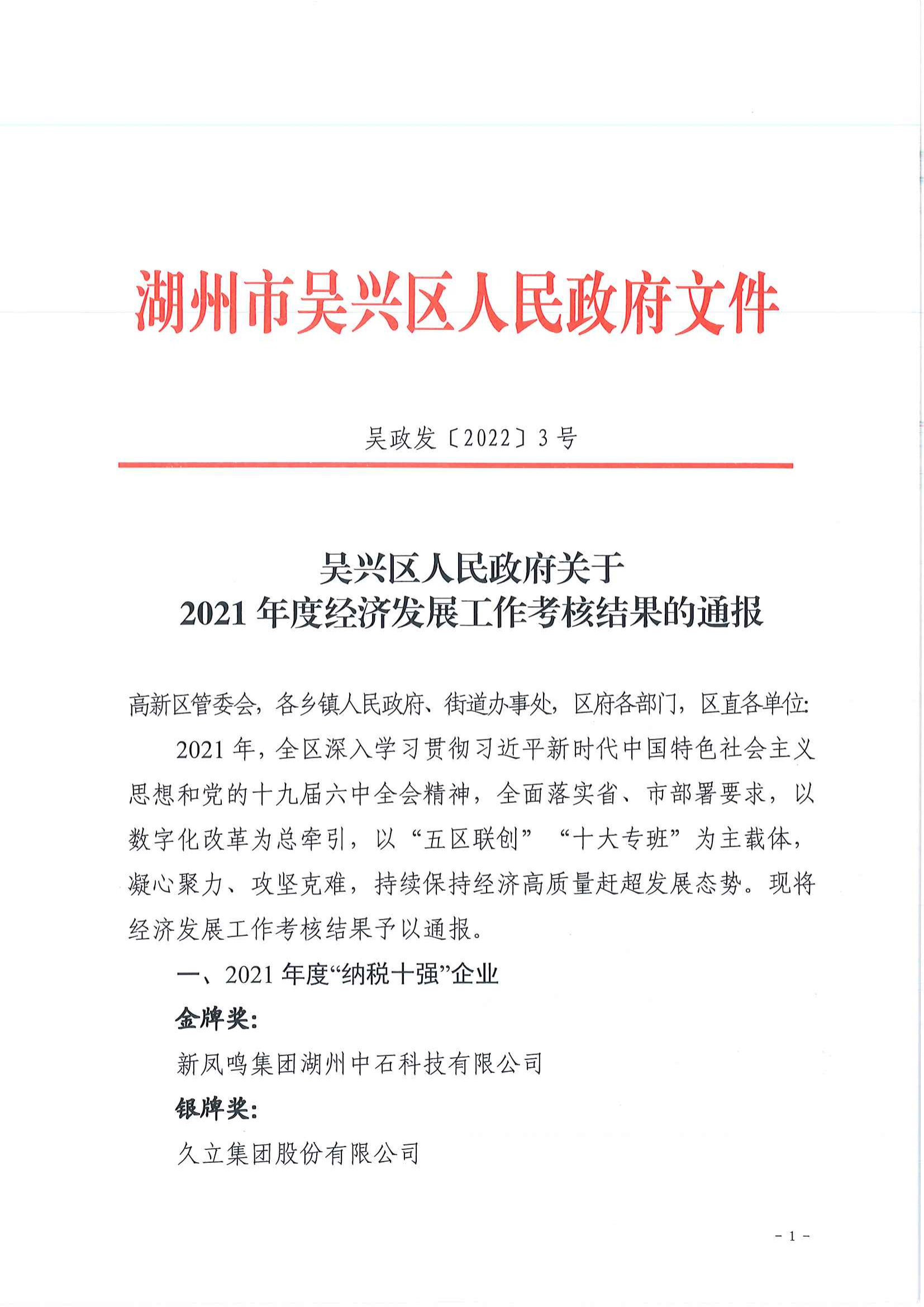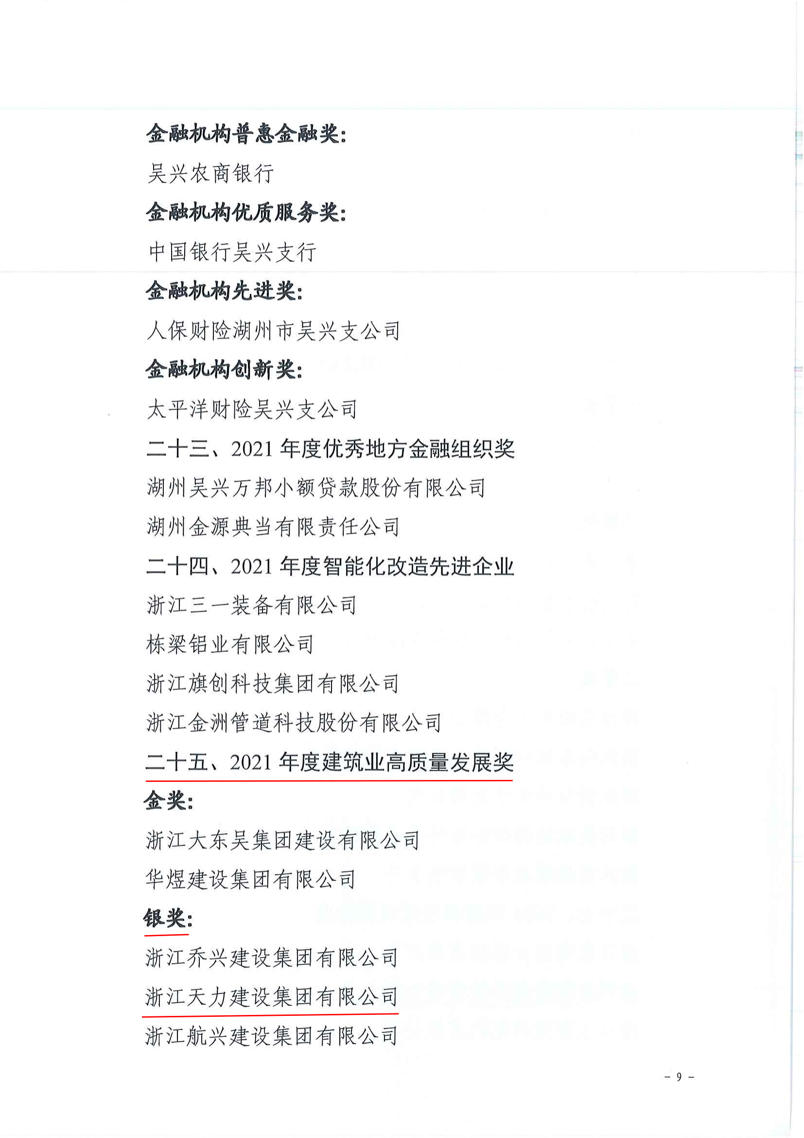 2021年度吳興區建筑業高質量發展獎——銀獎