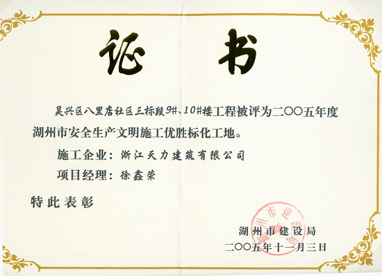 吳興區八里店社區三標段9#、10#樓2005年度湖州市優勝標化