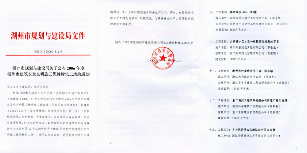 2006年湖州建筑安全文明優勝標化