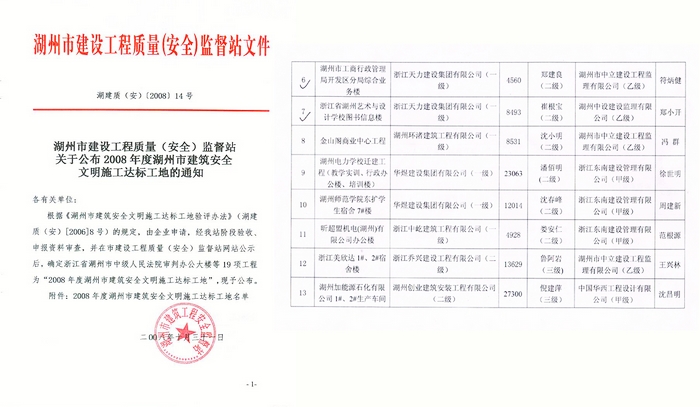 2008年市建筑安全文明施工達標工地