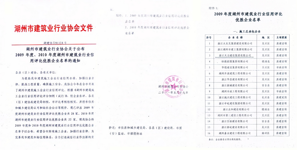 2009、2010年度市建筑業(yè)行業(yè)評比信用優(yōu)勝企業(yè)
