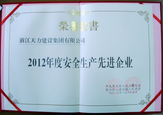 2012年度安全生產(chǎn)先進(jìn)企業(yè)
