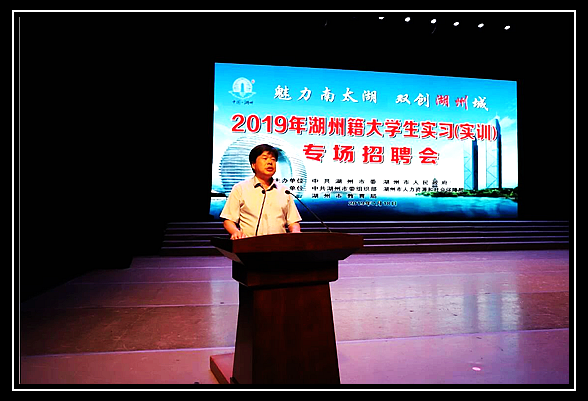 為聚引更多湖州籍大學生回湖就業創業,更好利用暑期時間積極投身社會實踐,7月18日上午,由中共湖州市委、湖州市人民政府主辦,市委組織部、市人力社保局、市教育局聯合承辦的2019年“魅力南太湖 雙創湖州城”——湖州籍大學生實習(實訓)專場招聘會在湖州大劇院成功舉行。市委常委、組織部長徐仲儀,市人民政府副市長閔云,市委組織部副部長、市委人才辦常務副主任賀雪榮,市教育局局長潘音等出席活動。市人力資源和社會保障局局長王樹主持開幕式。