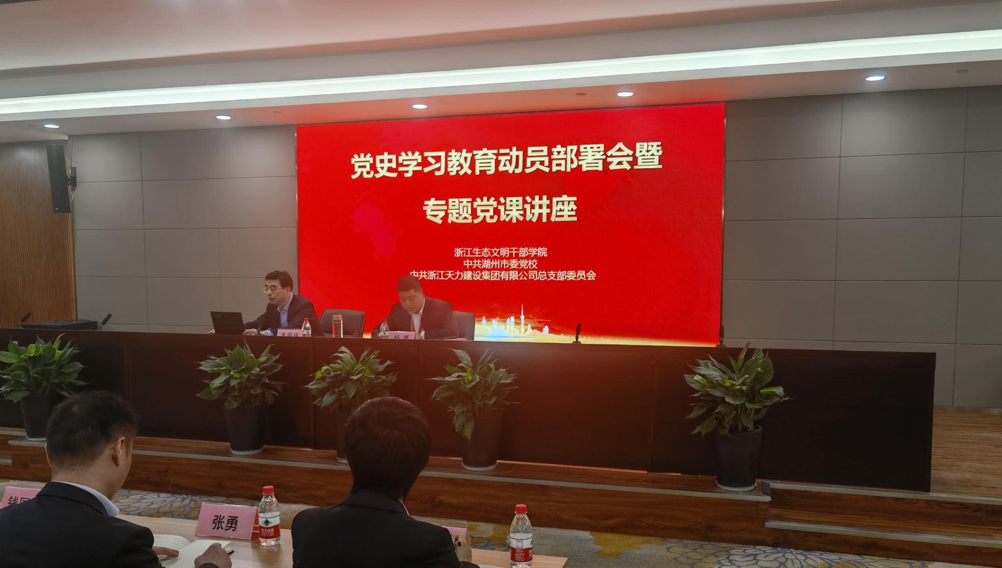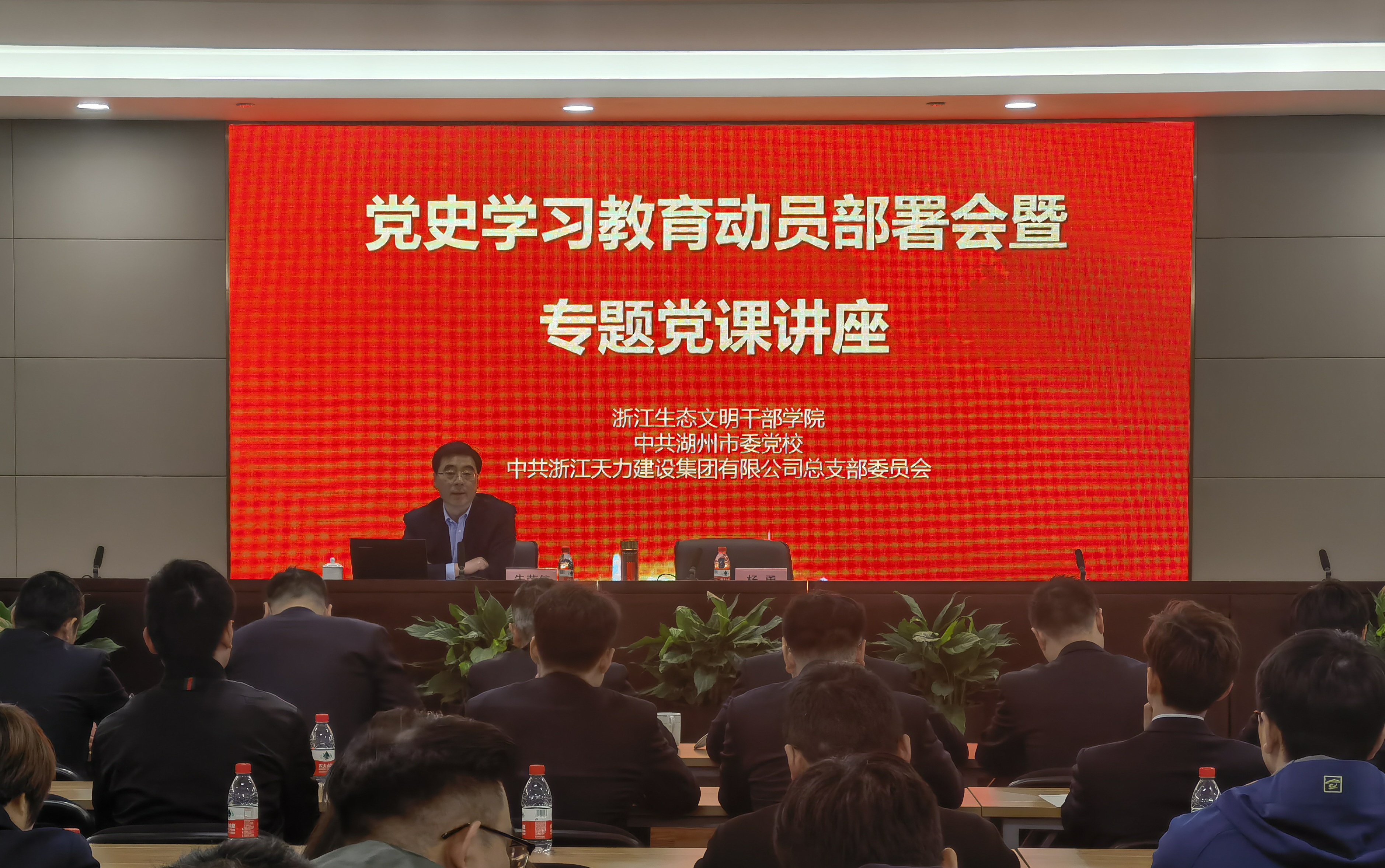 為深入貫徹落實習近平總書記在黨史學習教育動員大會的重要講話精神,貫徹落實全市黨史學習教育動員大會精神,4月8日下午,集團公司在一樓報告廳組織召開了黨史學習教育動員部署會暨專題黨課講座。此次講座特地邀請浙江生態文明干部學院常務副院長、中共湖州市委黨校常務副校長朱榮偉同志作主講人,集團公司總裁楊勇作動員講話,公司領導攜全體黨員、全體員工共同參加學習。