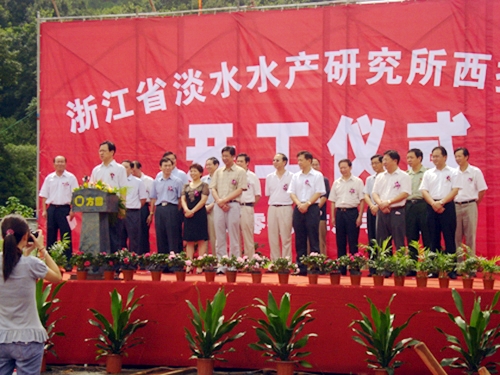 由我公司總承包的浙江省淡水水產研究所“西擴工程”開工典禮于2009年8月8日在湖隆重舉行。國家海洋局、省科技廳、財政廳及湖州市委、市政府、省淡水研究所領導參加了奠基儀式。浙江省副省長茅臨生發來賀信,市委書記、市人大常委會主任孫文友宣布浙江省淡水水產研究所“西擴工程”正式開工。